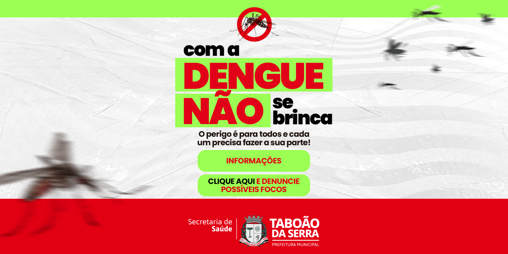 O site denguenao.ts.sp.gov.br é uma iniciativa da Prefeitura de Taboão da Serra para intensificar o combate ao mosquito Aedes aegypti, transmissor da dengue, chikungunya e zika vírus.